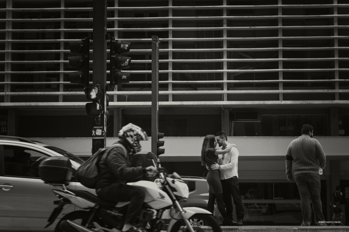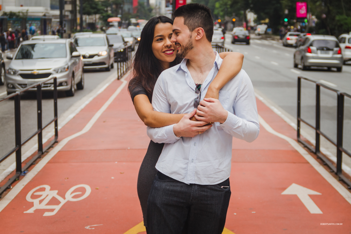 O casal queria um ensaio mais no estilo urbano e a sugestão foi a Avenida Paulista que é considerada um dos principais pontos turísticos mais característicos, a avenida revela sua importância não só como pólo econômico, mas também como centralidade cultural e de entretenimento.