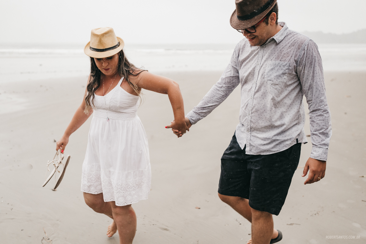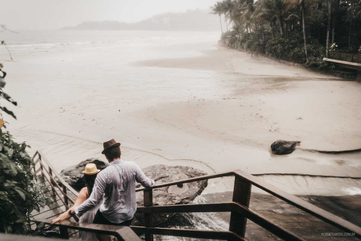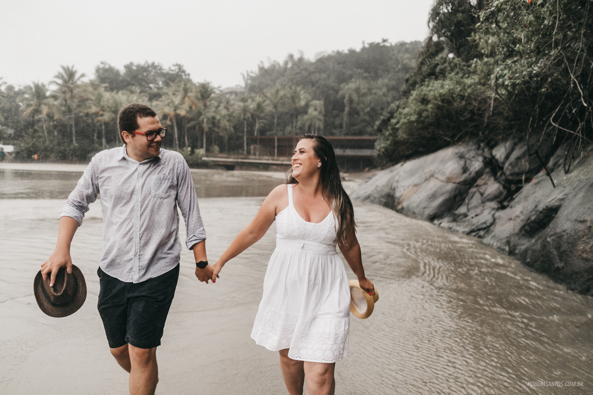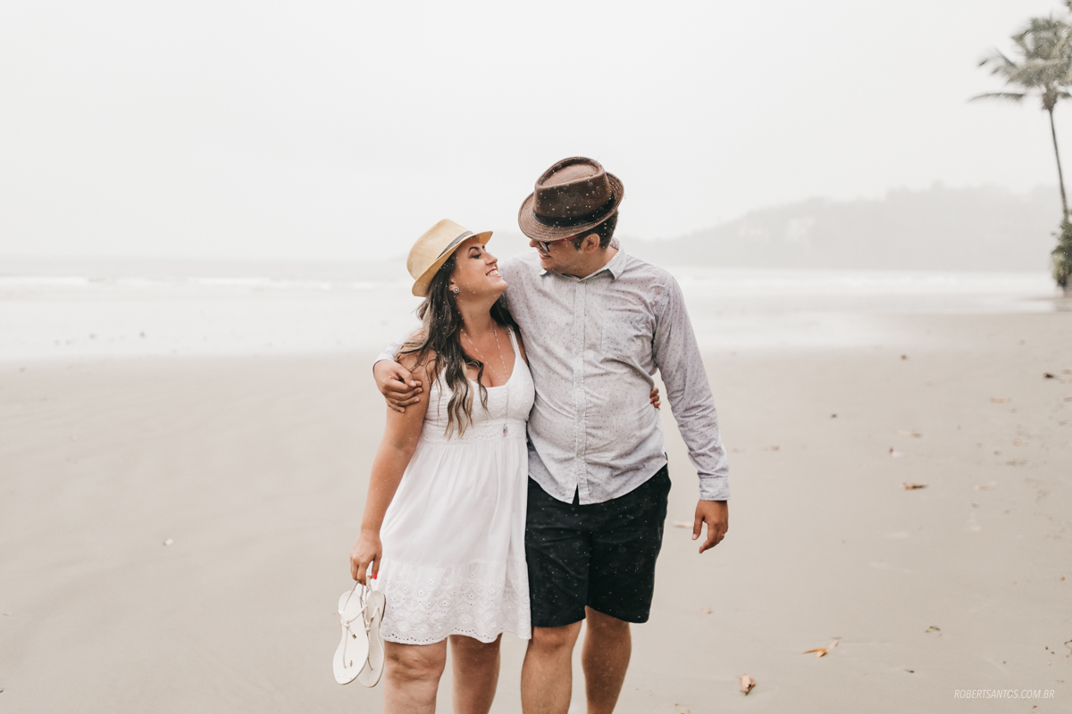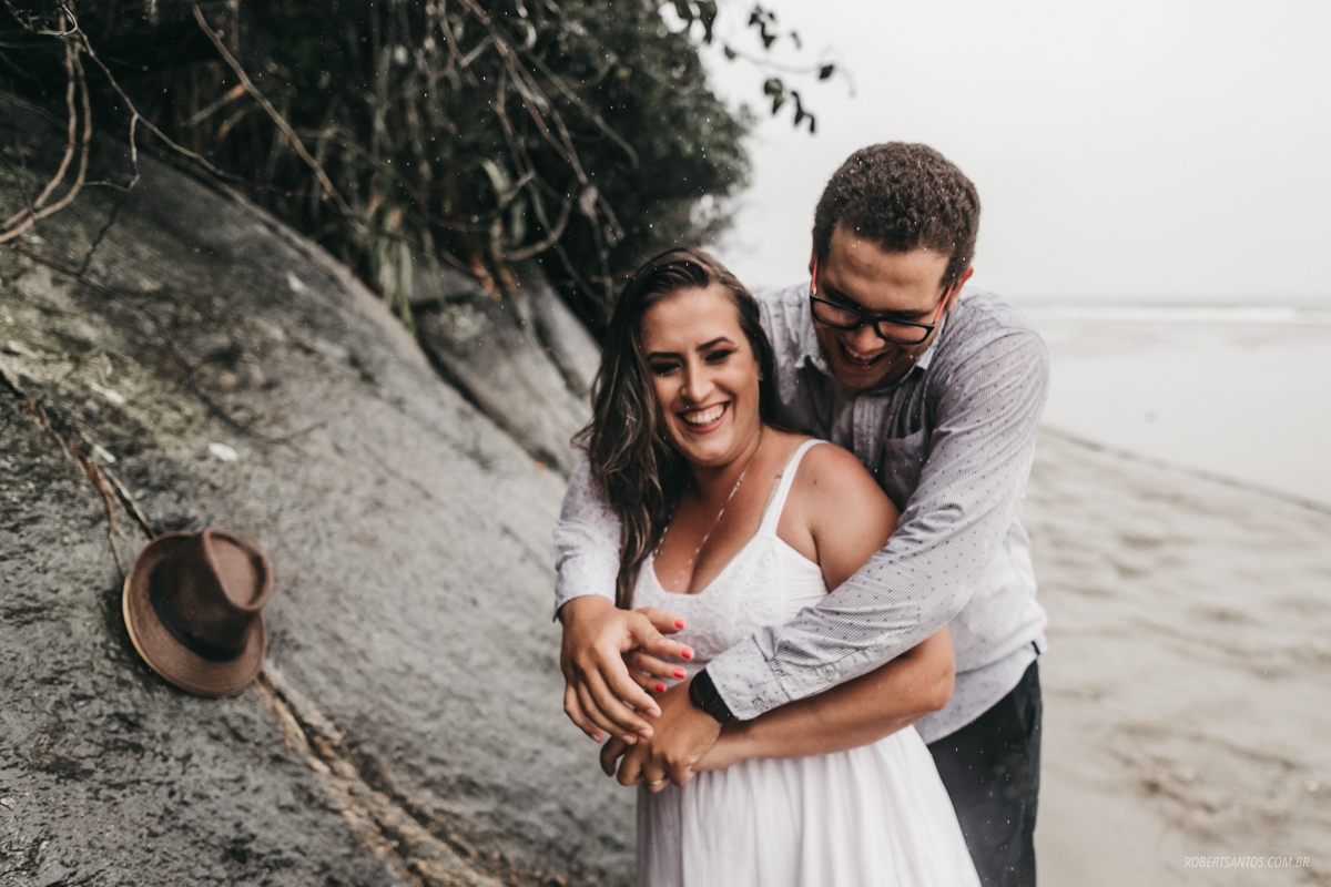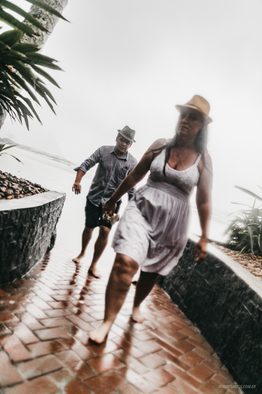 Eles são de Barretos - SP quase 7h de viagem, estavam passando férias no litoral norte, e pra comemorar os 2 anos de casados decidiram fazer um ensaio bacana na praia, porém não imaginaram que cairia a chuva que caiu...
