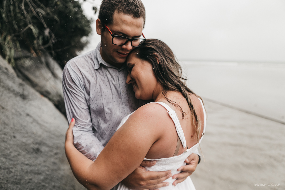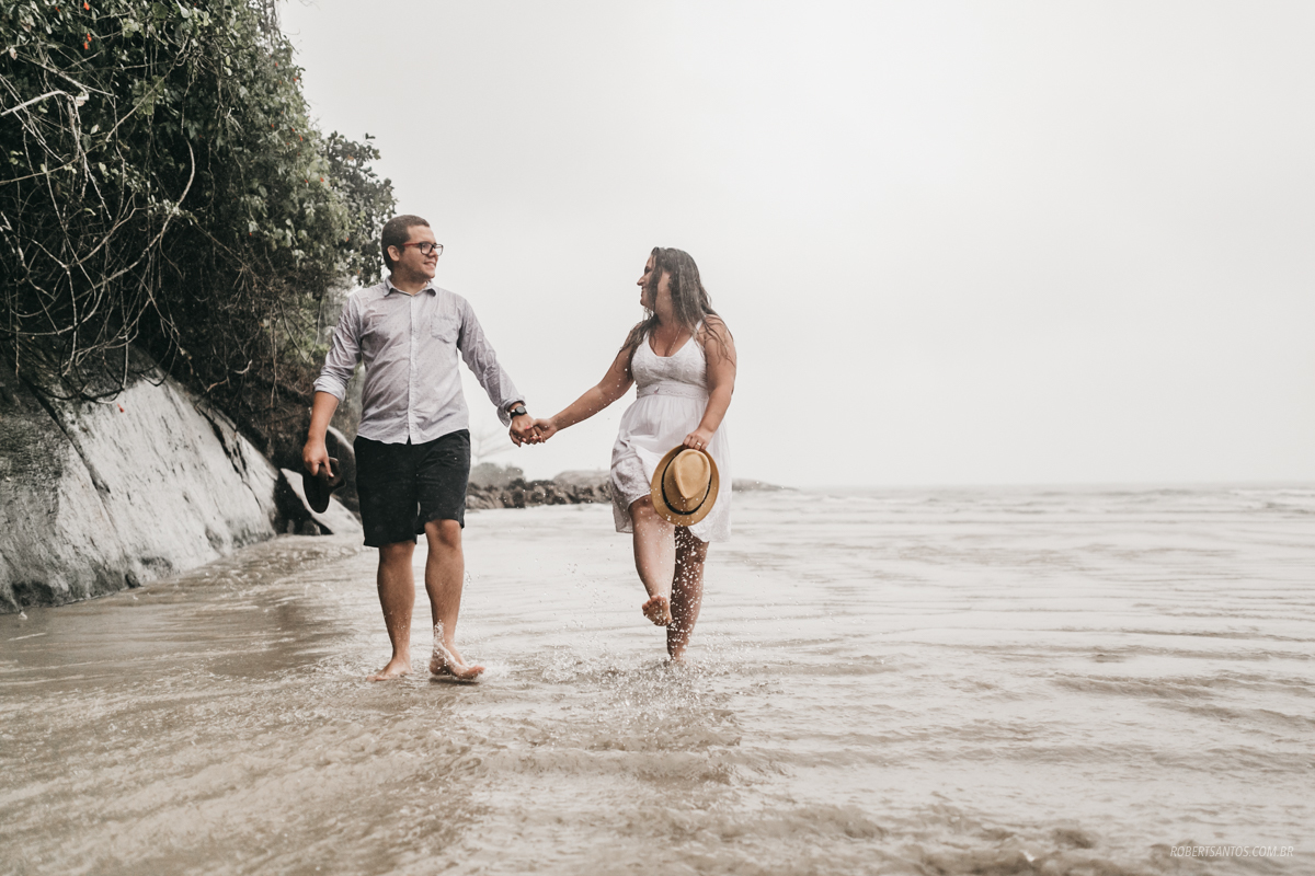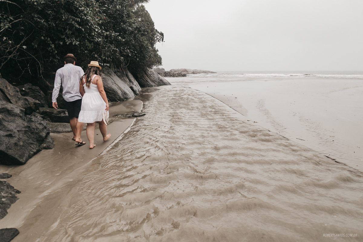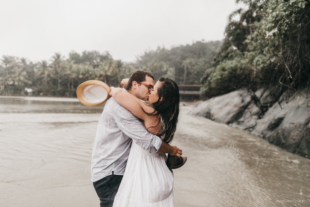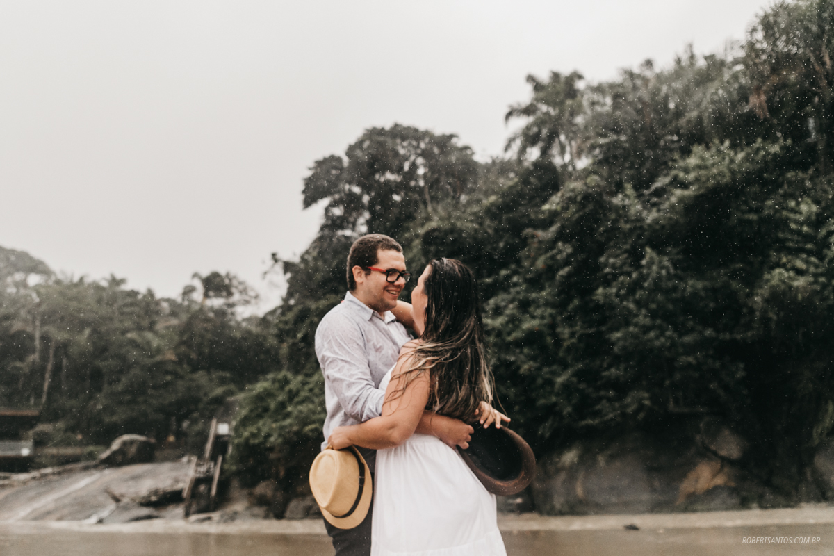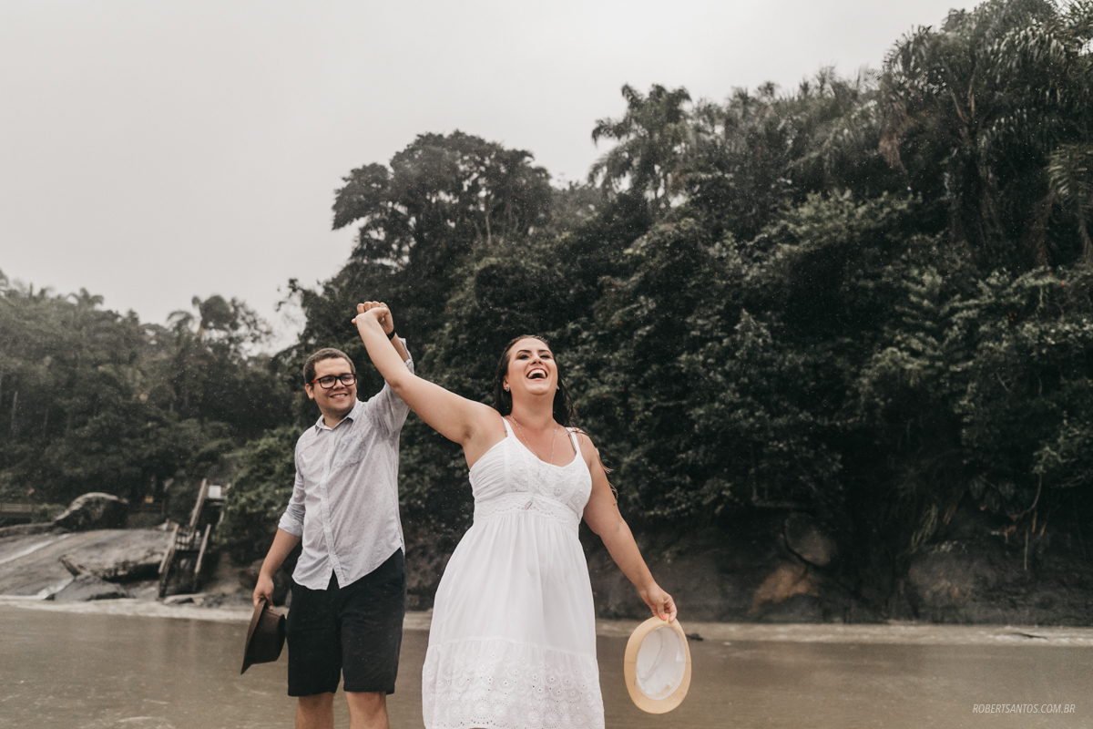 Eles são de Barretos - SP quase 7h de viagem, estavam passando férias no litoral norte, e pra comemorar os 2 anos de casados decidiram fazer um ensaio bacana na praia, porém não imaginaram que cairia a chuva que caiu...
