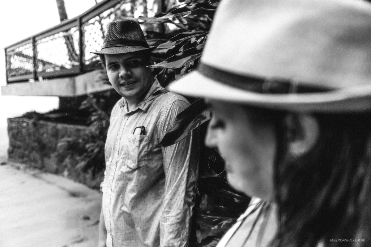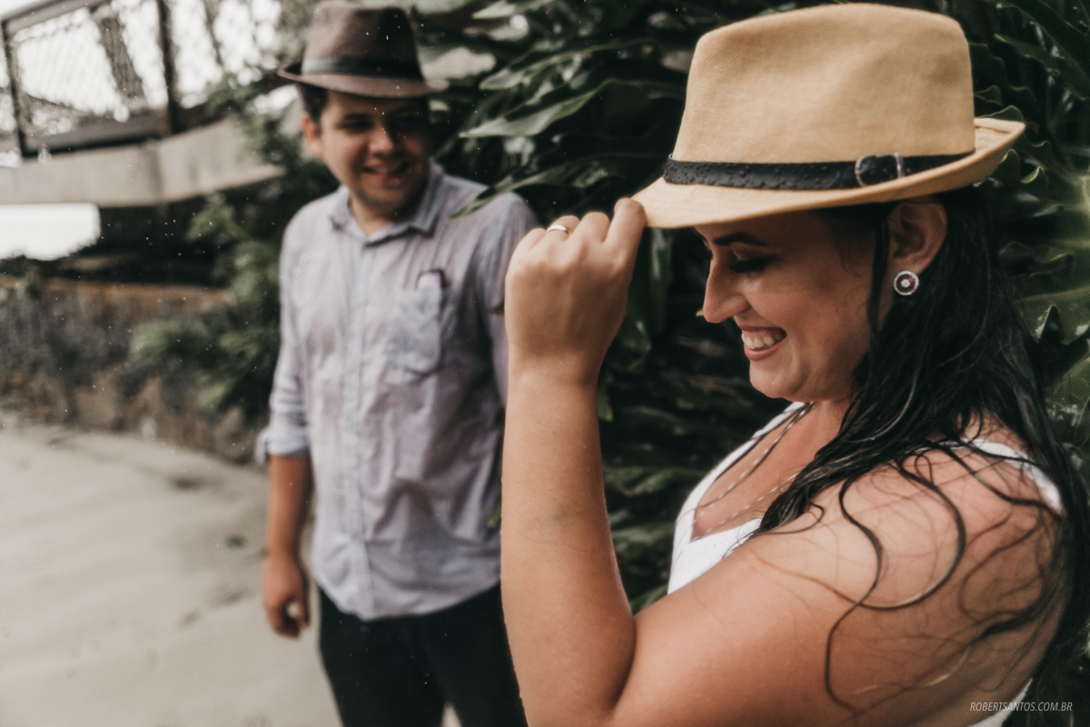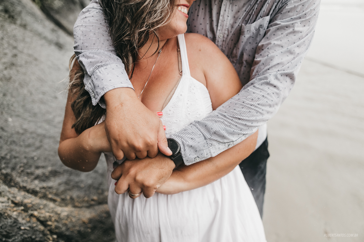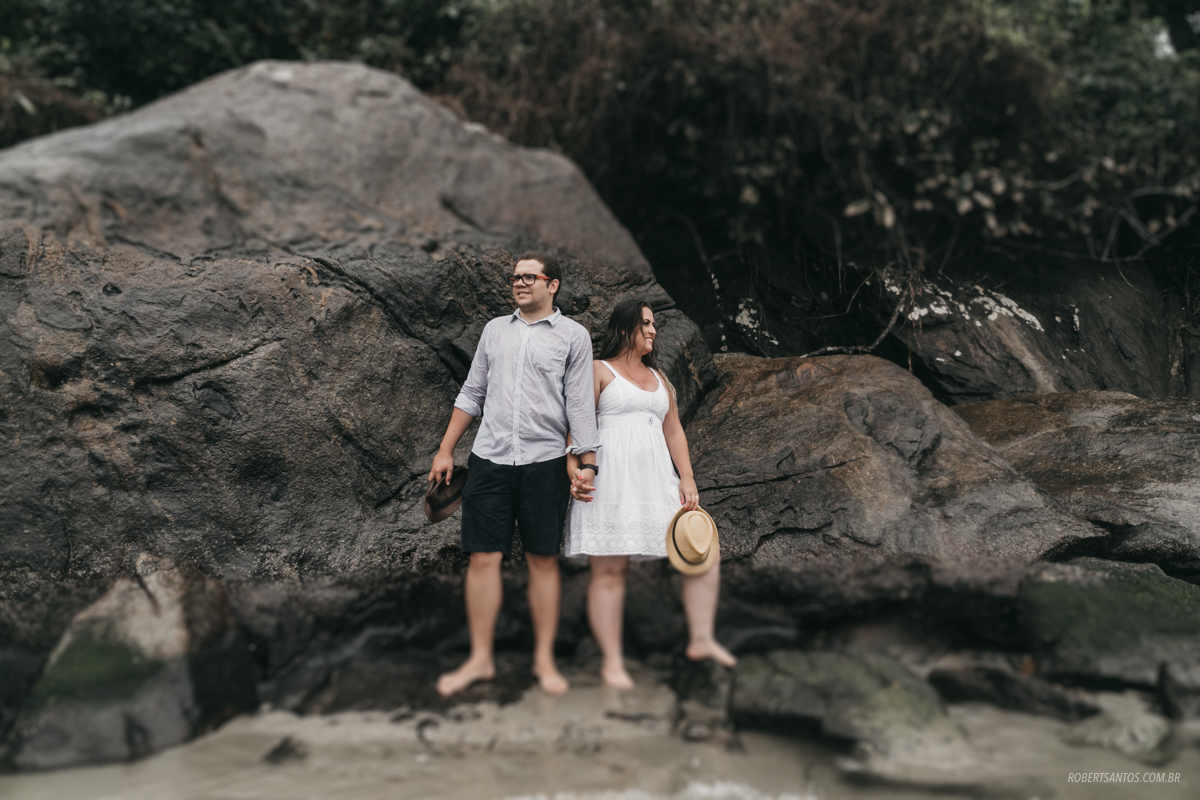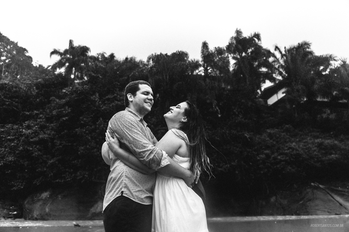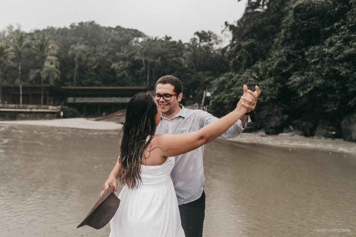 Eles são de Barretos - SP quase 7h de viagem, estavam passando férias no litoral norte, e pra comemorar os 2 anos de casados decidiram fazer um ensaio bacana na praia, porém não imaginaram que cairia a chuva que caiu...